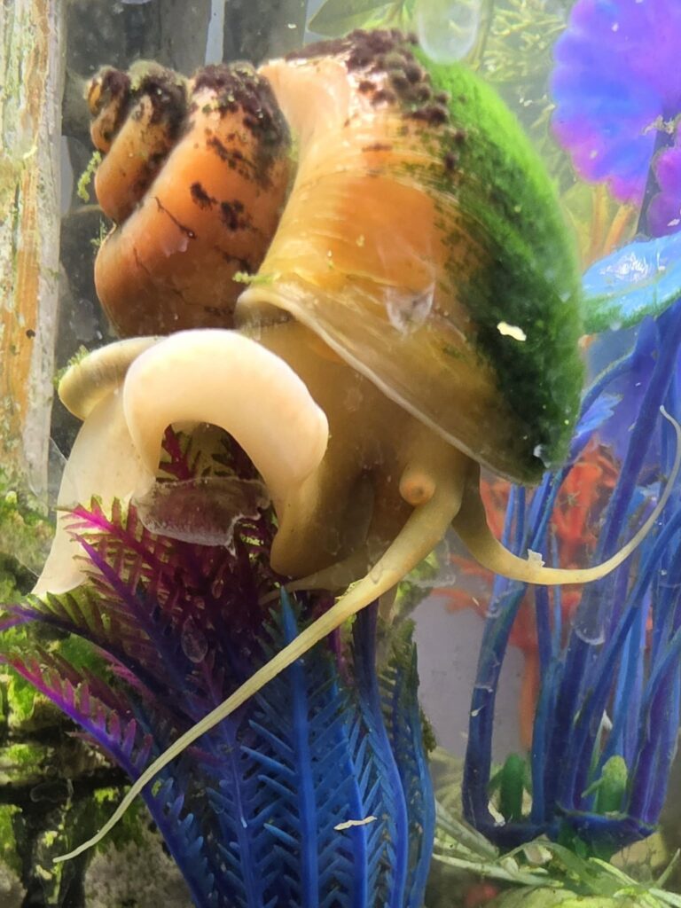 The shell of your mystery snail is its protective casing. A study by Anna Galewska and Tomasz Niemiec found that “Snail shells contain from 95% to 99% calcium carbonate from calcite and argonite crystals.”1